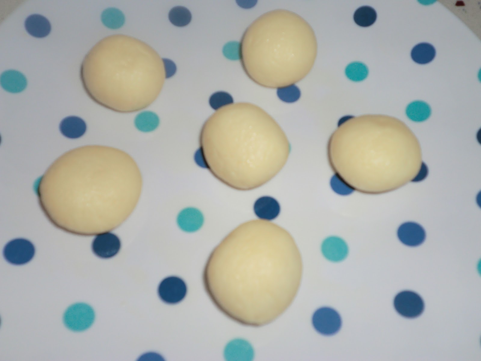 Make the dough by combining the milk powder,all pupose flour, ghee, baking powder and butter. Add whole milk to make a medium-hard dough. Divide the dough into 18-20 portions. Make balls by gently rolling each portion between your palms into a smooth ball. Place the balls on a plate. Cover with a damp dry kitchen towel.